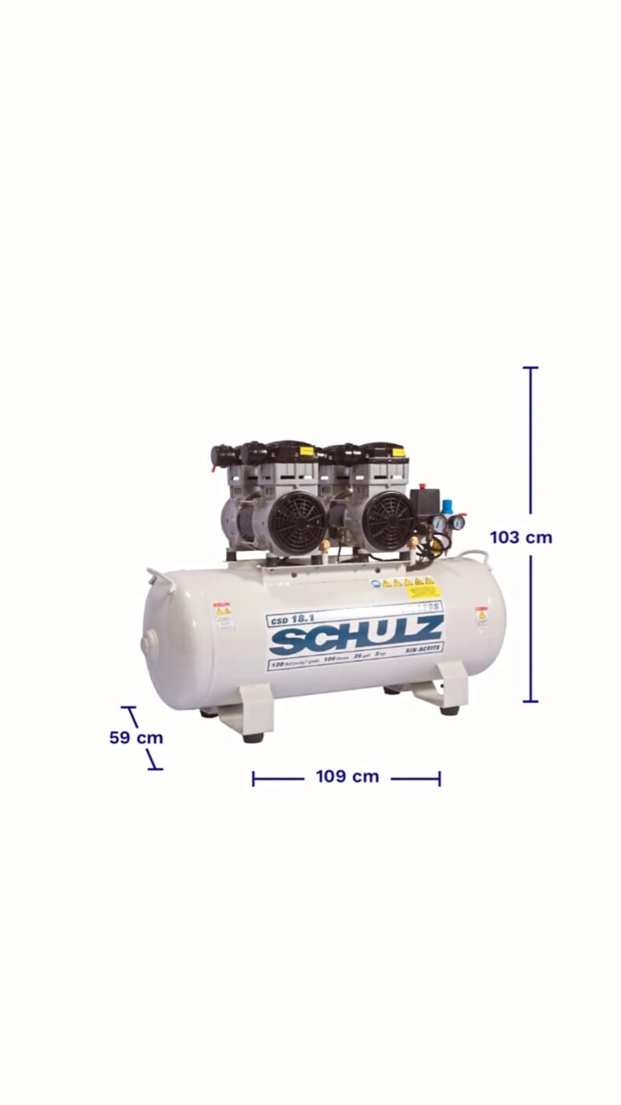 El CSD-18.1/100 es un compresor sin aceite, ideal para aplicaciones médico-odontológicas. Cuenta con un estanque horizontal de 100 litros, motor de 3 HP (2 x 1.5 HP) a 220 V, y doble cilindro de aluminio con tratamiento de alta tecnología para mayor eficiencia y durabilidad.