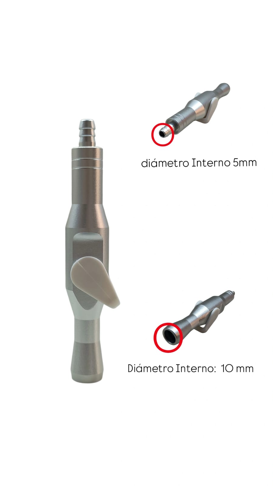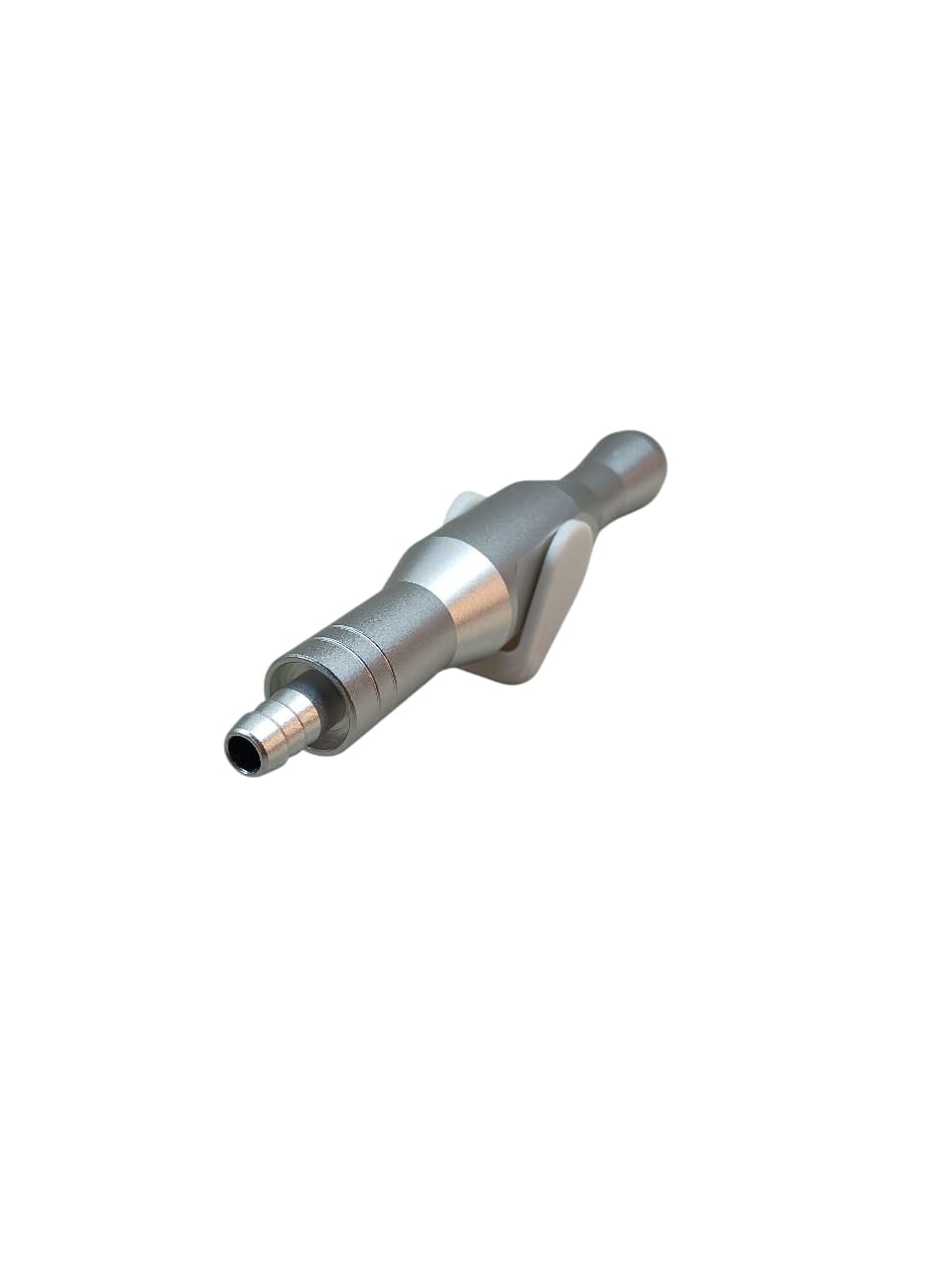 Conector ajustable para eyector dental, fabricado en acero de alta calidad para mayor durabilidad. Su diseño regulable permite adaptarse a distintas necesidades