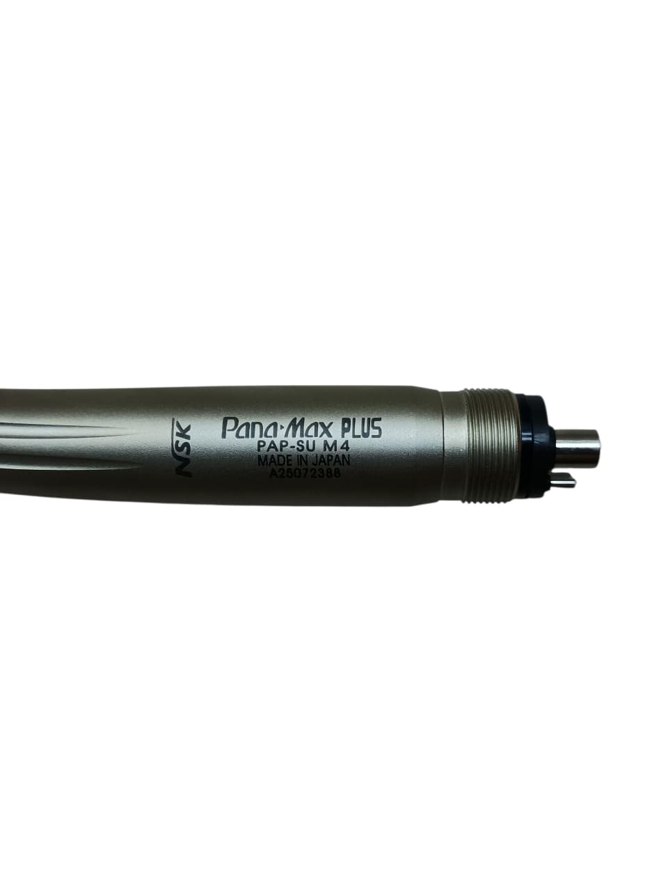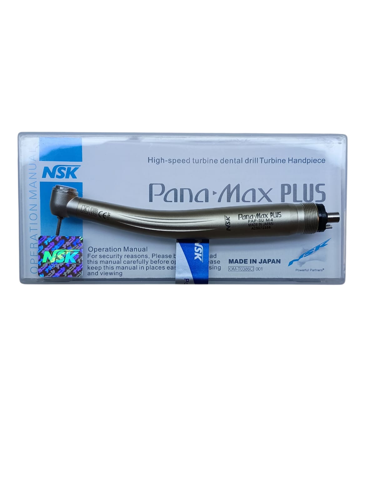 Turbina Pana Max PLUS con válvula anti retorno integrada. Esta nueva generación supera a sus predecesoras en durabilidad y potencia, sin comprometer la comodidad del usuario. Su diseño de cuerpo más delgado garantiza una visibilidad óptima en el área de trabajo y facilita el acceso a toda la cavidad oral.